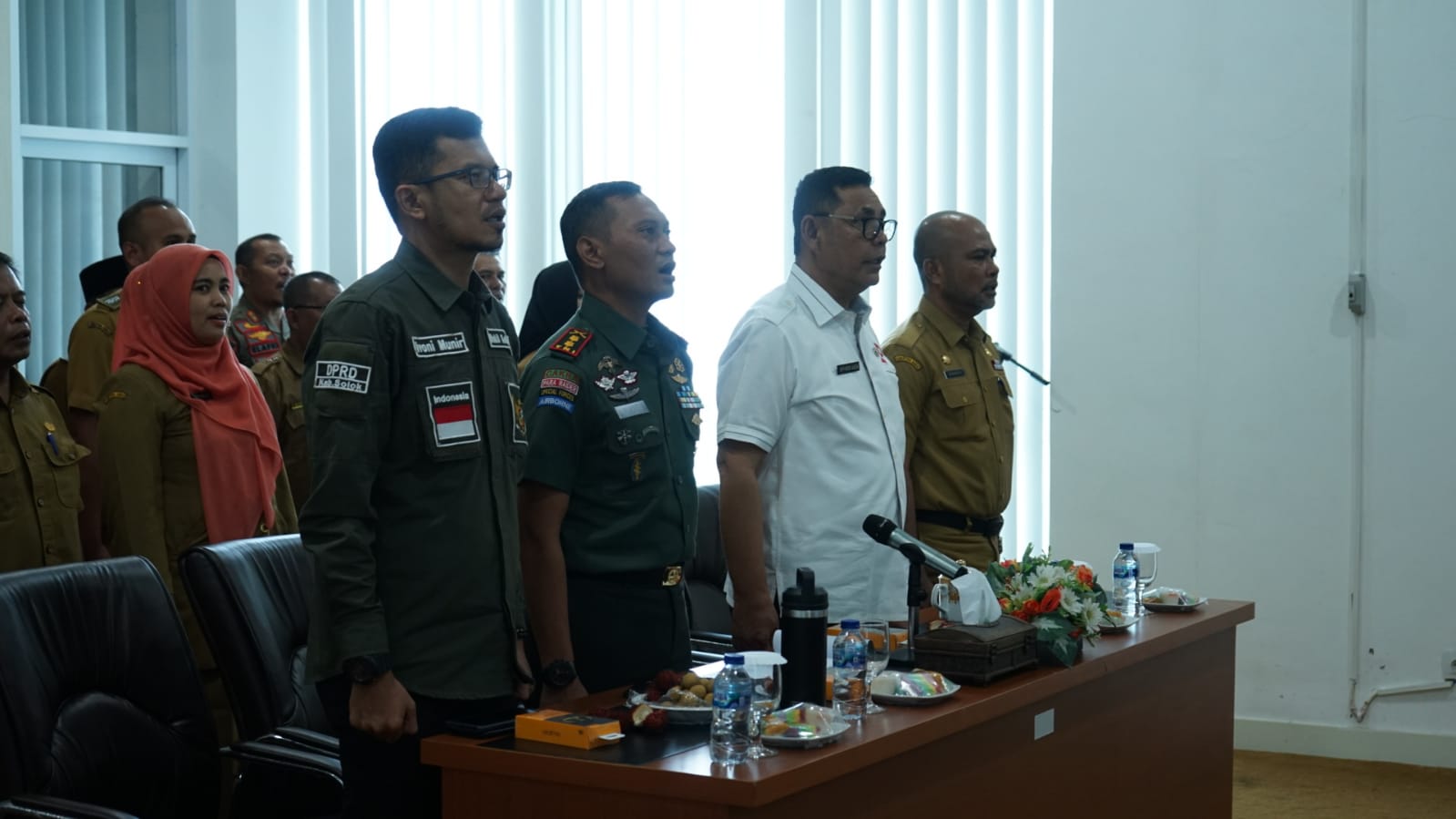 SOLOK, KP – Bupati Solok Epyardi Asda bersama Dandim 0309/Solok Letkol Inf Aji Satrio dan jajaran mengikuti Rakornis Tentara Manunggal Masuk Desa (TMMD) ke-118 Tahun 2023, Selasa (12/9). Kegiatan itu dilaksanakan melalui Zoom Meeting di Ruang Rapat Setda Kabupaten Solok.