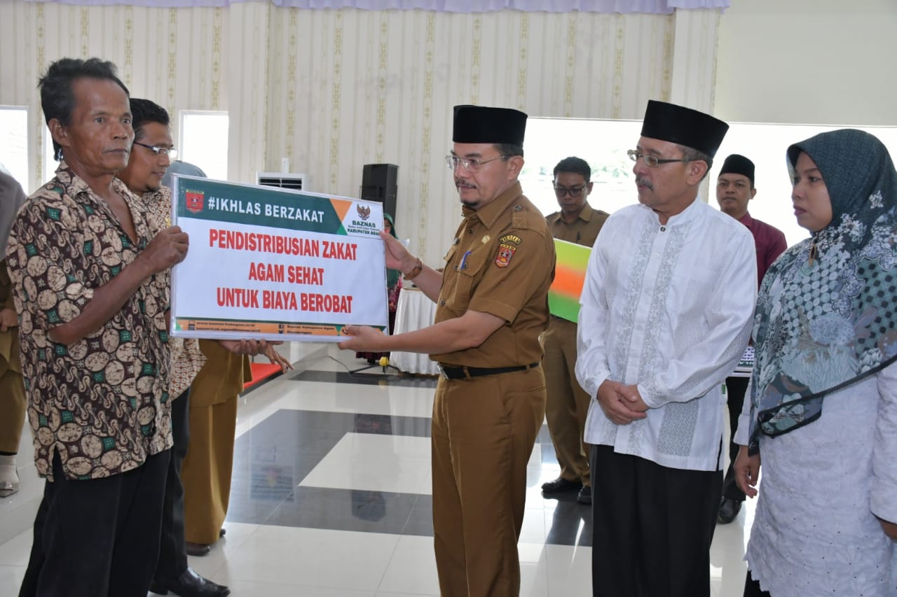 AGAM, KP – Baznas Agam menyalurkan dana zakat sebesar Rp272,4 juta kepada 210 mustahik, di balairung rumah dinas bupati, Selasa (29/8). Dana zakat itu diserahkan Bupati diwakili Asisten II Setdakab Agam Jetson.
