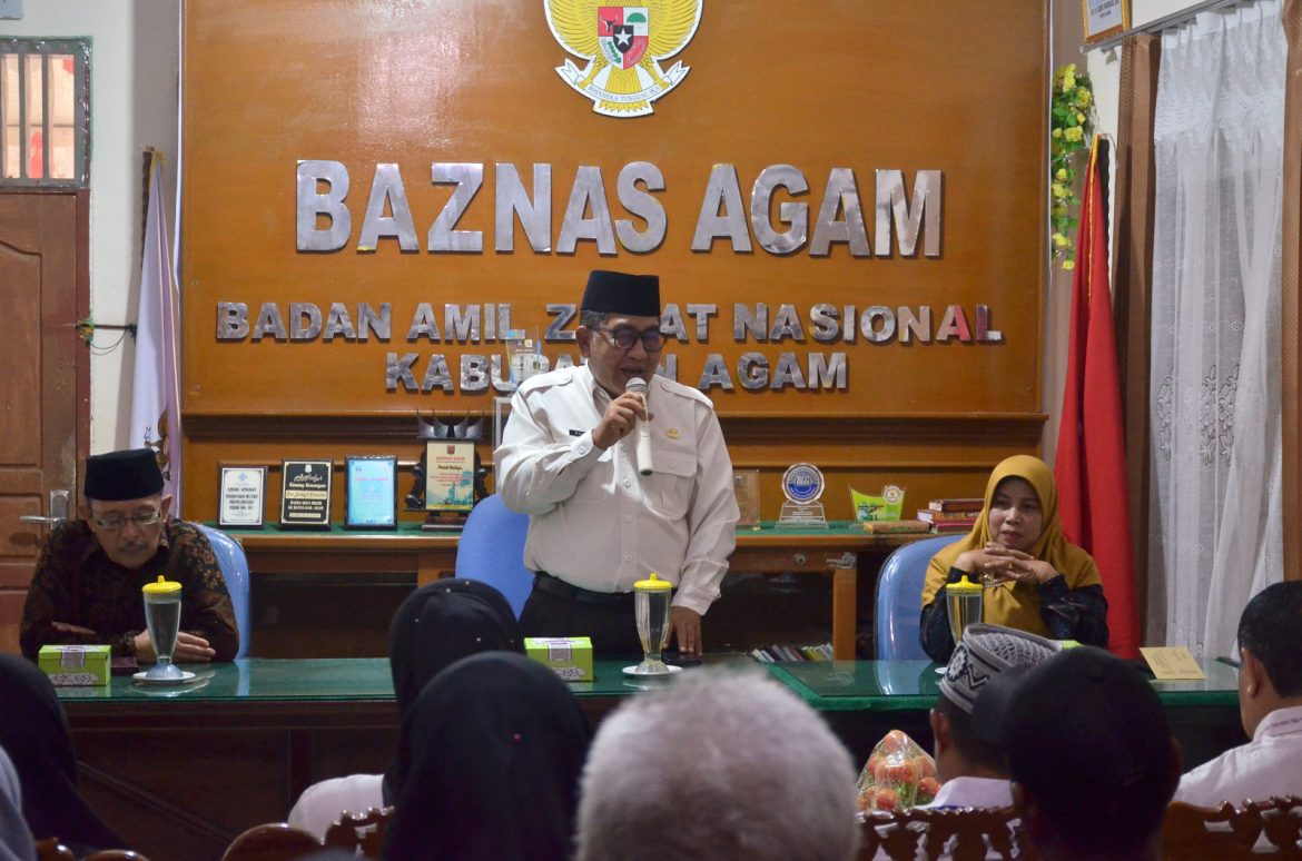 Hal ini ditegaskannya saat menyalurkan zakat kepada puluhan mustahik di Kantor Baznas Kabupaten Agam, Rabu (4/10).