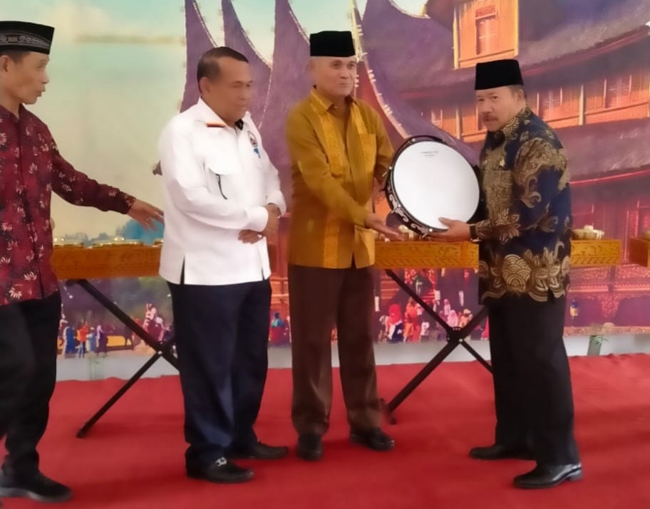 AGAM, KP – Bupati Agam Andri Warman menyerahkan seperangkat alat musik kesenian khas Minang kepada Ikatan Keluarga Luhak Agam Raya (IKLAR) Jawa Timur. Bantuan itu diserahkan di Rumah Gadang Minangkabau Gebu Minang, Surabaya, Jawa Timur, Senin (12/6).