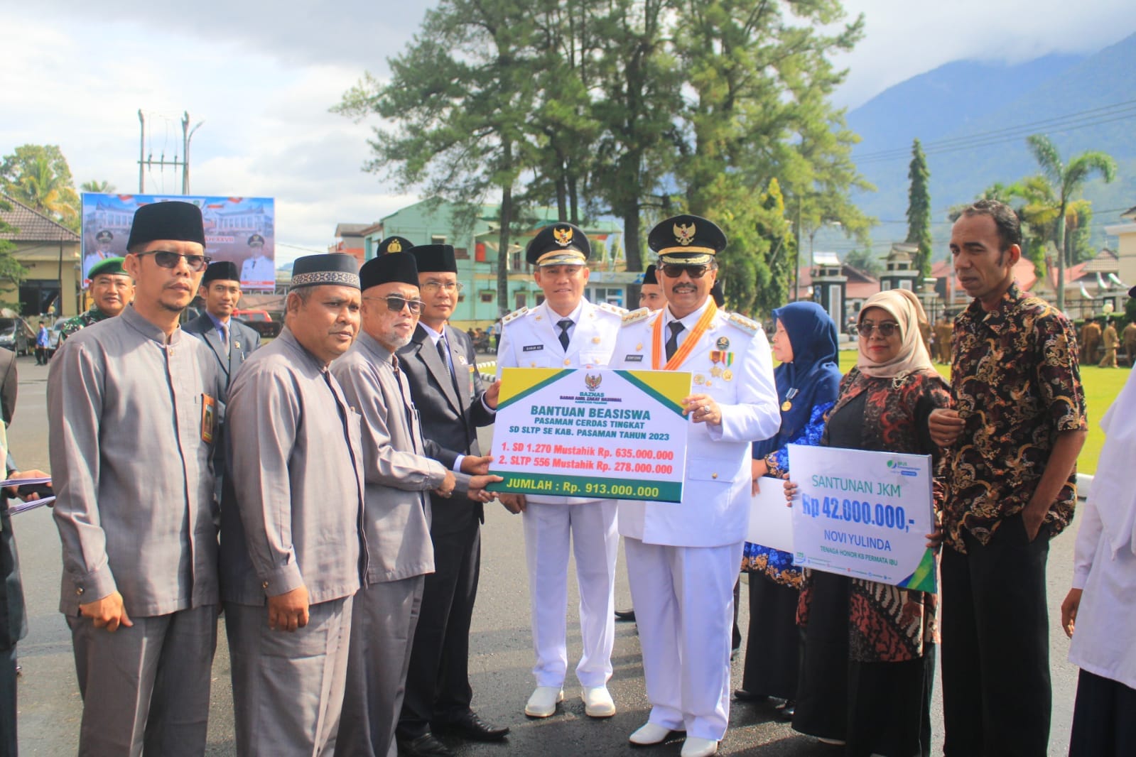 Usai upacara, Badan Amil Zakat Nasional (BAZNAS) Kabupaten Pasaman memberikan bantuan beasiswa program Pasaman Cerdas kepada 15 orang terpilih. Para penerima bantuan tersebut diantaranya adalah Fadhikal Syafiq, Aknal Listi, Maulana Al Hidayatullah, Keinya Clarisa Mustia, Muhammad Hafizh, Riva Cahya Kamila Shifa, Khumaira Putri Erindra, Habib Rizieq, Muhammad Fahreza, Tata Tri Ananda, Andini Ismiatul Falah, Elisa Vitryana HSB, Aulia Risky Pratama, Razia Al Fathan, dan Alil Fatzri Setiawarman.