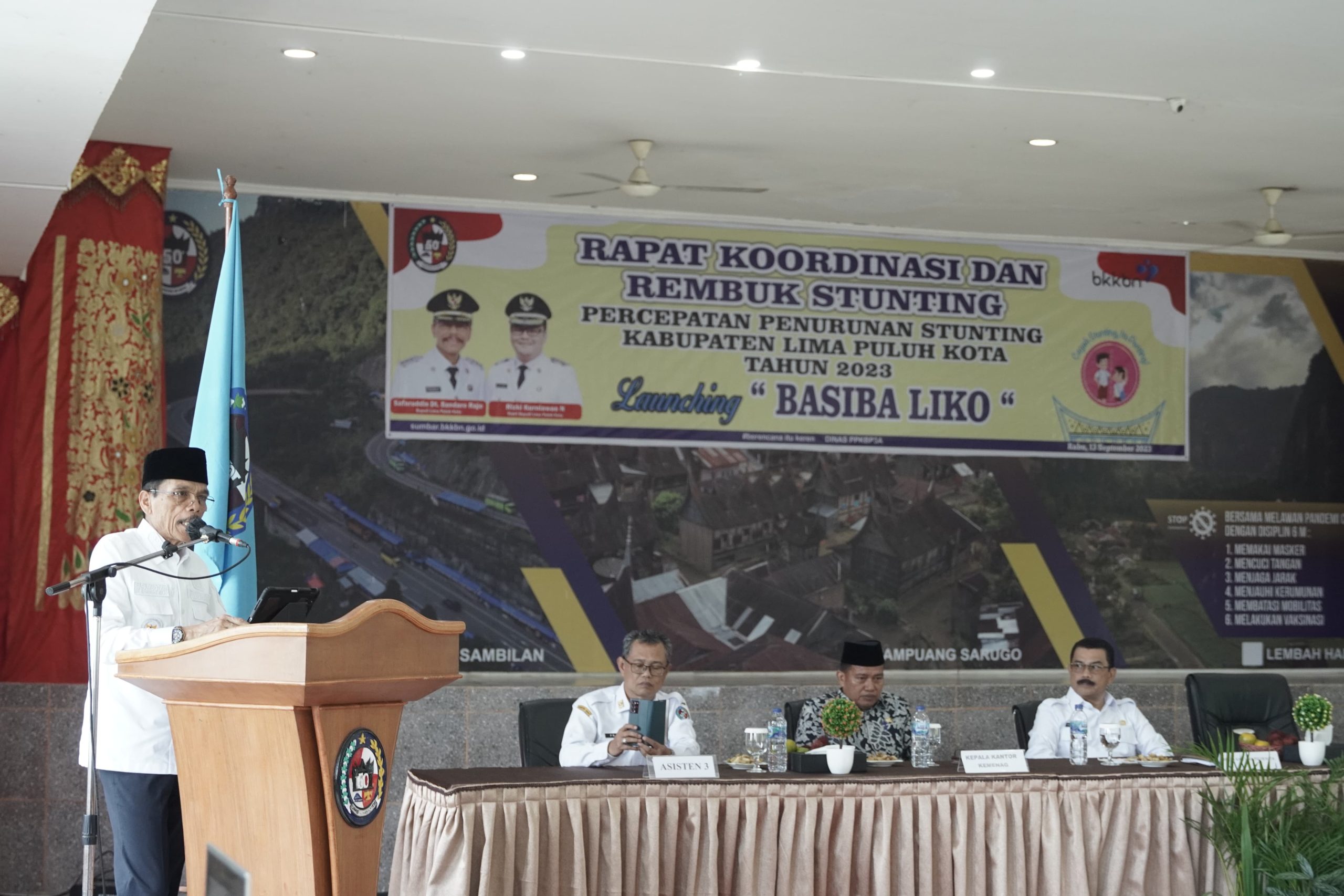 LIMAPULUH KOTA, KP – Bupati Limapuluh Kota Safaruddin membuka rapat koordinasi dan rembuk stunting tingkat Kabupaten Limapuluh Kota sekaligus meluncurkan program ‘BASIBA LIKO (Bersama Atasi Stunting dengan Ibu Bapak Asuh Lima Puluh Kota)’, di Aula Kantor Bupati Limapuluh Kota, Rabu (13/9).