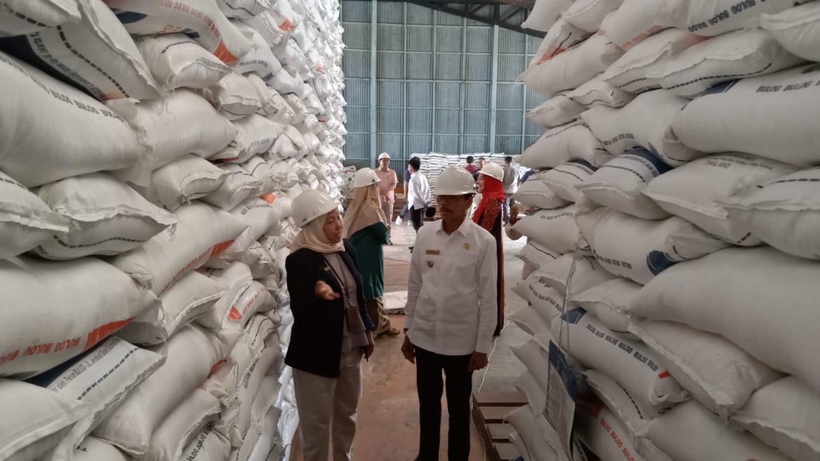 LIMAPULUH KOTA, KP- Guna memastikan penyaluran bantuan beras Badan Pangan Nasional (Bapanas) berjalan lancar, Bupati Limapuluh Kota H. Safaruddin bersama Pimpinan Cabang Bulog Bukittinggi Sri Wahyuni dan Kepala Pos Payakumbuh Titik Pelita, meninjau stok beras di Gudang Bulog Tanjung Pati, Jumat (15/9).
