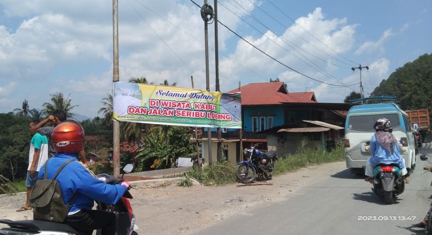 LIMAPULUH KOTA, KP – Bingung tak tahu kemana lagi harus mengadu agar ruas jalan provinsi Payakumbuh – Lintau yang rusak parah bisa diperbaiki, warga Bukik Alang Lawik, Nagari Labuah Gunuang, Kecamatan Lareh Sago Halaban, Kabupaten Limapuluh Kota meluapkan kekesalannya dengan memasang spanduk bernuansa sarkas.