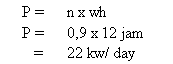Selanjutnya pada daya maksimum PLN per jam merupakan hasil pembagian Daya PLN dibagi 1000 hingga menghasilkan 0,9 kw/hour. Sementara untuk kw/day, 0,9 x 24 jam, hingga menghasilkan sebesar 22. Dan kw/month, 0,9 x 24 jam x 30 hari, hingga menghasilkan sebesar 648, untuk tabel dibawah cara mencarinya sama dengan yang diatas.