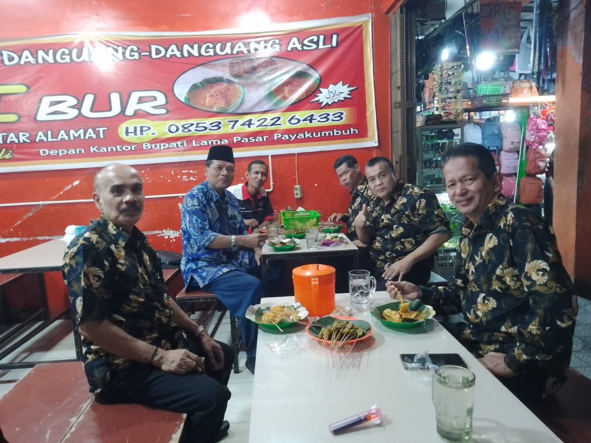 PAYAKUMBUH, KP – Bupati Limapuluh Kota periode 2016-2021, H. Irfendi Arbi mengajak pengurus Persatuan Wartawan Indonesia (PWI) dan Ikatan Keluarga Wartawan Indonesia (IKWI) Provinsi Sumatra Barat (Sumbar) untuk menikmati sate danguang-danguang, kuliner khas Minangkabau, di pusat Kota Payakumbuh pada Minggu malam (19/6).